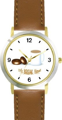 Coffee & Doughnuts or Donuts - It's Break Time - JP - WATCHBUDDY® DELUXE TWO-TONE THEME WATCH - Arabic Numbers - Brown Leather Strap-Size-Women's Size-Small Review